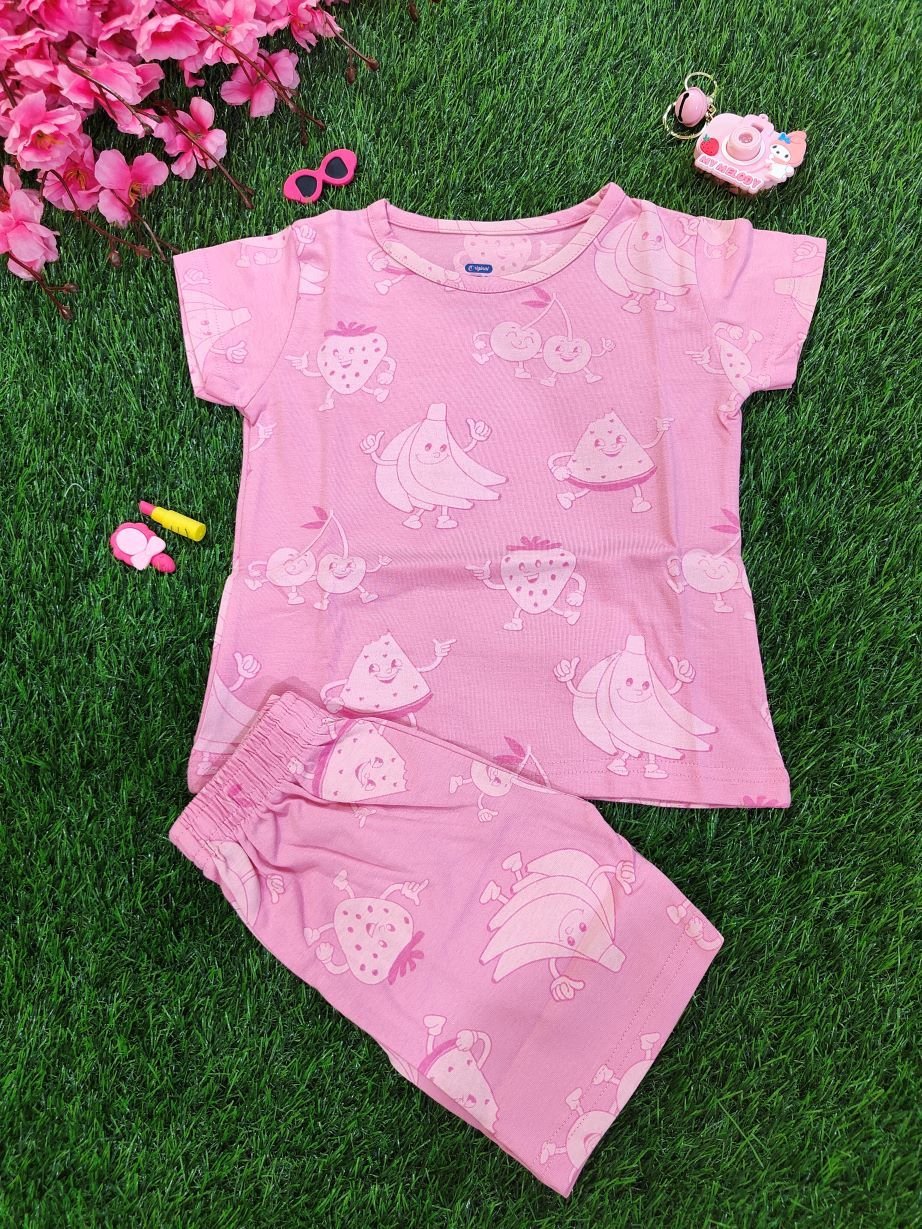 Cute Fruits Girls Co-Ord Set Pink